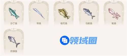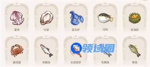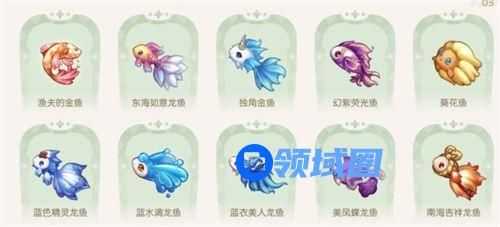 普通鱼:河鲀、面包蟹、赤睛鱼、黑线鳕、针鱼、鱿鱼、炸弹鱼;龙鱼:蓝衣美人龙鱼、美凤蝶龙鱼、俏丽公主龙鱼、炫彩飞仙鱼。