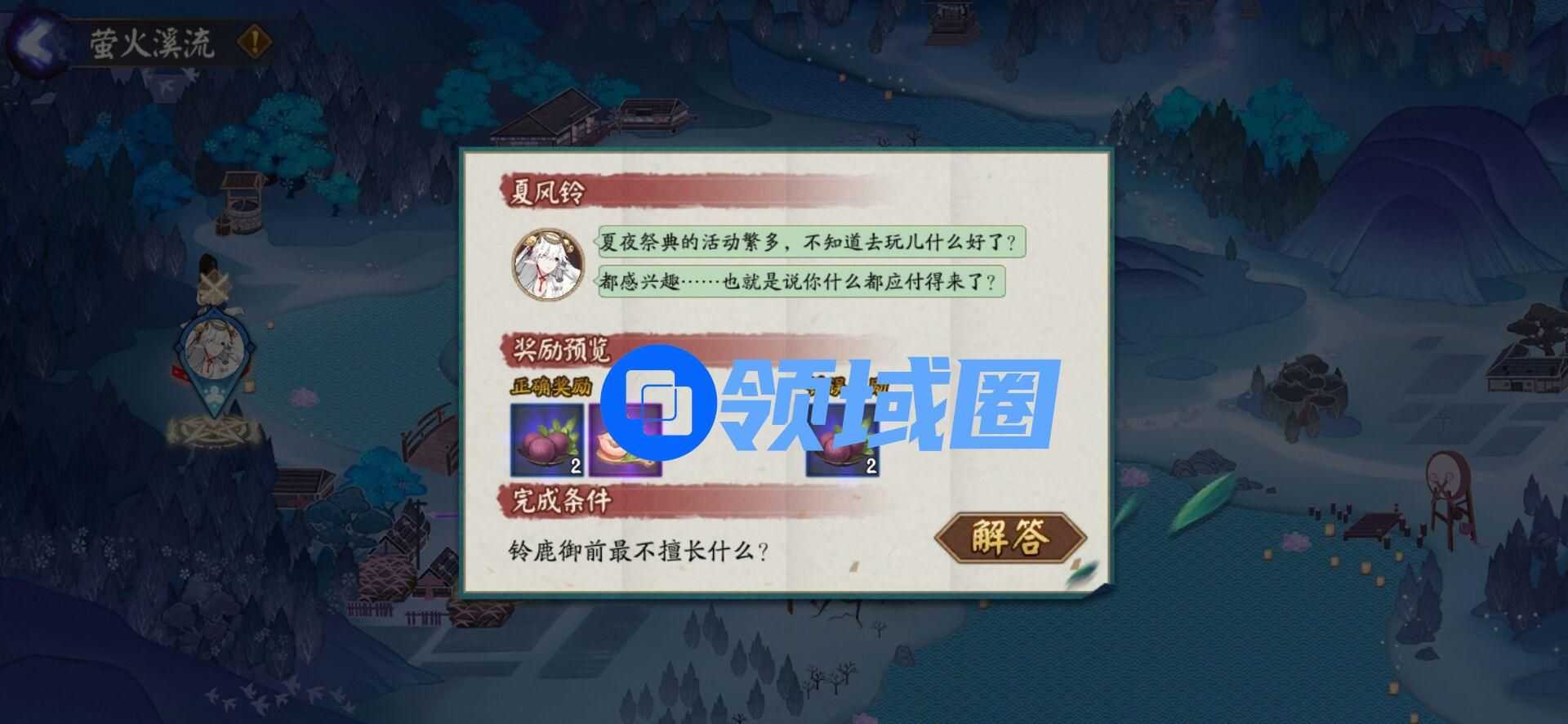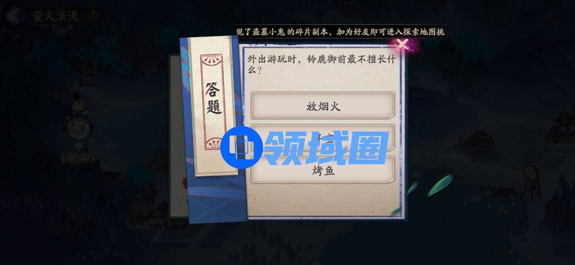 阴阳师铃鹿御前最不擅长什么?阴阳师萤火溪流7.14提出问题,说的是在外出游玩时,铃鹿御前最不擅长什么,可能许多人都不知道这个大江山之主的姐姐还有啥不会的事,那么就让68游戏小编来告诉玩家这一题该如何选择答案才正确。