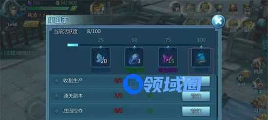 活跃度达到75,可以领取50点精力,完成游戏内的各种活动都能获得活跃度,一边游戏的同时,就能获得不少活跃度了,相当划算