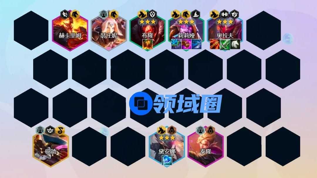 阵容组成:瑟庄妮、莉莉娅、布隆、皎月、奥拉夫、赫卡里姆、泰隆、巴德