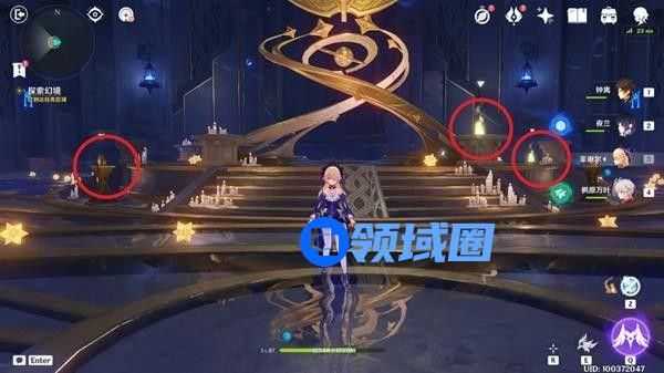 1,我们先进入秘境来到中心的水池旁,把这三个任务道具捡了先