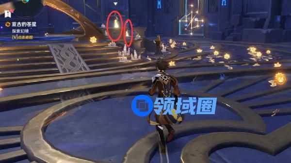 1、进入秘境之后我们开始探索,首先拾取这两个冒光的星象碎片。