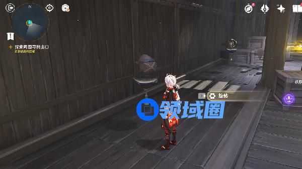 3、上去之后,顺着路一直走,会来到下一个房间。房间前有一个拉杆,先拉一下,让房间旋转。