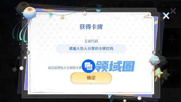 玩家可点击活动主面板上未拥有的卡牌,或进入卡包点击想要的卡牌复制王者代码进行索要(王者代码当日有效),索要成功后卡牌分享者将获得票券*1的奖励;每天最多可获得他人赠予的英雄卡1次;
