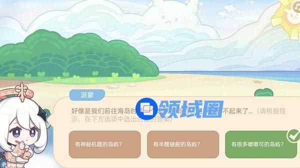 7月22日海上绮梦录第一天第一题:好像是我们前往海岛时第一个来到的岛屿,但派蒙想不起来了……