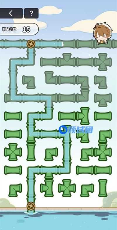在指定步数内,顺时针旋转水管,使水流从入水口顺利流往出水口即可通关成功。