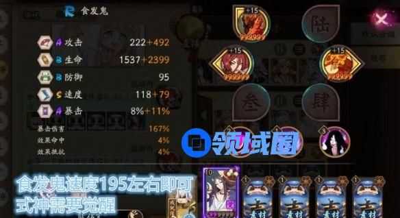 1.食发鬼:配速190~200之间,2星觉醒111即可,总生命>3800左右,五号位需要带生命(三号位带防御最好),其余式神白蛋,不用火灵