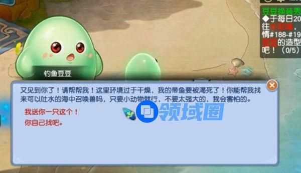 7、 钓鱼豆豆(208.22)处上交海星海狸章鱼等召唤兽(野生)即可