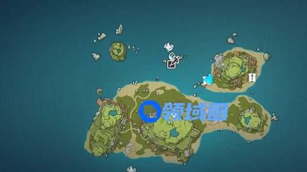 (4)然后我们的任务就已经变了,要去寻找另一个小队成员的线索。我们打开我们的地图传送到布丁岛山上的传送锚点。前往如图标记的“任务点”,如果你没有获取徽记的话,海边会有一个光点。我们捡起这个徽记。