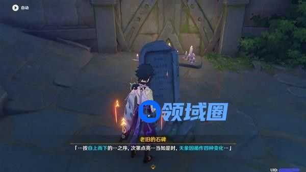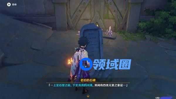 首先阅读石碑内容,“上至石碑之前,下至浅湾的河滩”指这个场景里的四个元素方碑。