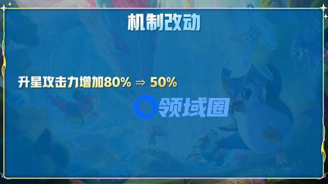 这次更新最大的改动就是棋子升星改动,上一次星级改动还是在几个赛季之前。现在星级提升从80%降低到50%,看似是整体削弱物理输出棋子,但其实不然,只是把大家可以看到设计师针对大部分棋子对其初始攻击力(1星)进行调整来避免物理输出棋子大砍,而法系一家独大的情况。