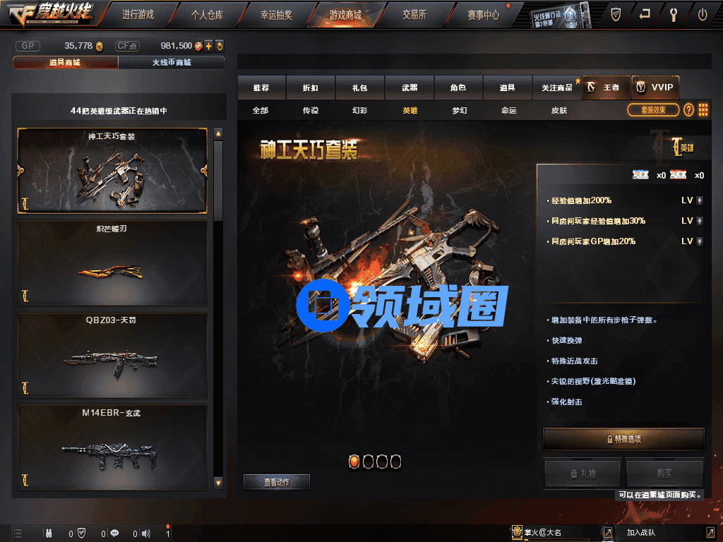 CF神工天巧套装效果属性