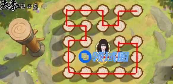 2、第二部分也没有什么难度,你只需要先向上-右-上-左-上-右,到达数字7号的木桩位置。