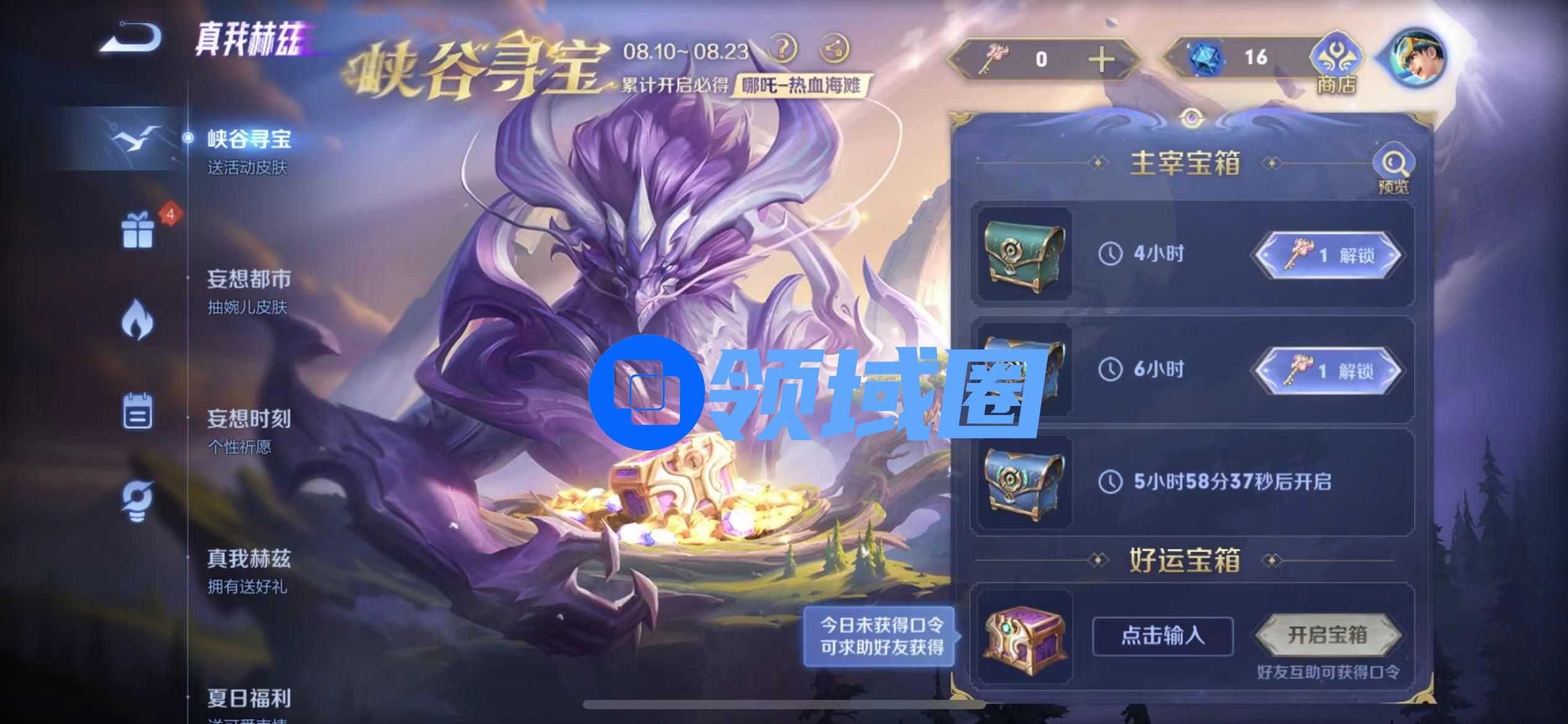 【王者荣耀】好运宝箱SPIVI8F,复制链接前往活动,开启好运宝箱兑换全新皮肤哪吒-热血海滩!