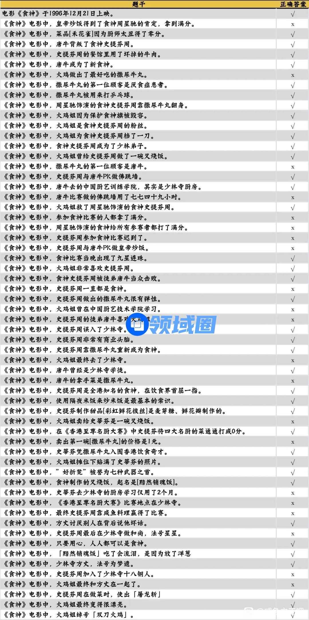 20.《食神》电影中,参加食神比赛的人都拿了满分。