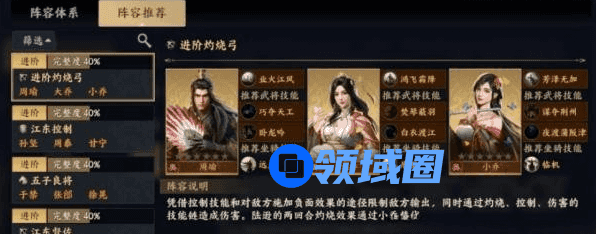 依赖阵中武将的控制和减益手段来限制敌人的输出。