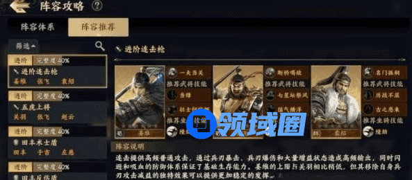 战地无疆部曲阵容怎么选择?战地无疆部曲阵容怎么进行搭配?在游戏中,阵容的选择是非常的重要的,很多的玩家对于阵容的搭配可能不是特别的清楚,那么下面,我们就为各位带来战地无疆阵容搭配攻略,需要的玩家可以在这里参考看看。