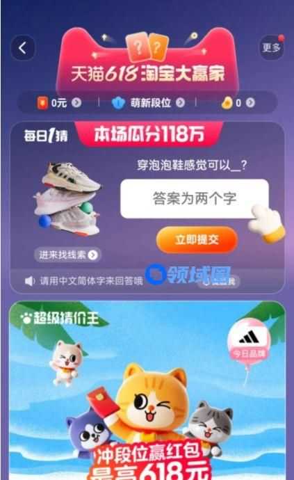 2、即可进入天猫618淘宝大赢家活动页面,每日都可参与答题