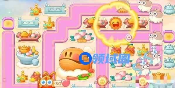 1、进入关卡以后,先在下图位置建造一个太阳花炮塔,然后在攻击周围障碍的同时,还能轻松消灭第一波兔子。