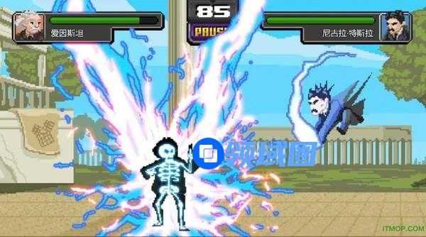 游戏的类型就正如他的名字一样,是一款格斗游戏。亮点就在于这个游戏里面的人物可是个个都不得了,都是古今的著名科学家,堪称史上最强格斗阵容,你们自己来感受一下:
