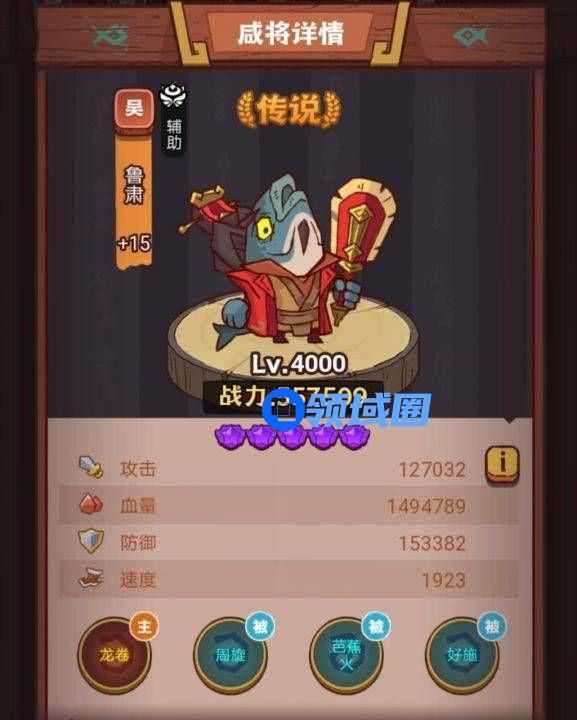 鲁肃:传说品质的咸将,主要位置是辅助,提升队友的防御和攻击,并自身擅长提升自己的攻击力与格挡。