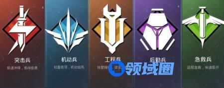 如红颜色的是突击兵,蓝色的是机动兵,褐色的是工程兵,紫色的是后勤兵,绿色的是急救包。