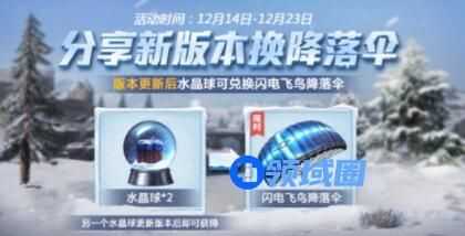 具体方法:分享2次新版本,就可以使用获得的水晶球,兑换闪电飞鸟降落伞。