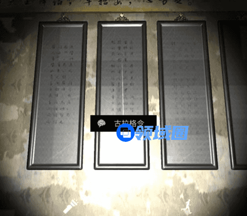 古拉格令这个线索需要根据“水浒满江红”写菊花,“月示术”写牡丹,“镜中诗”写荷花,“瓶中字”写梅花,排列朝代顺序按照成诗。接着关联出“谜题”这个线索之后,来到右侧的第一个房间(一定要打开手电筒),点击墙上的钉子,将四幅画按照“牡丹荷花梅花菊花”的顺序重新挂上去。接着来到左侧第2个房间(尸体的房间),发现之前的无字画框左侧3幅都有了字,点击左起第2幅字,就可以获得线索。