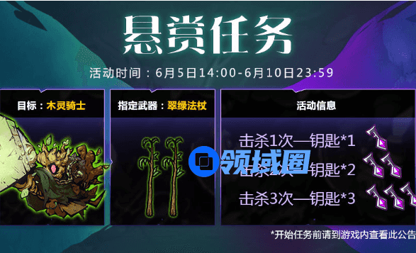 本周悬赏任务升级,需要宝藏猎人使用指定的武器对木灵骑士进行击杀!难度升级!