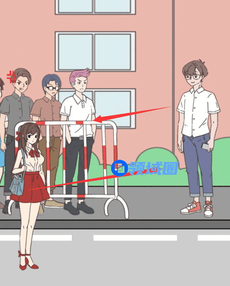 先点击女主身上的包得到红牛,然后给男主,之后把栅栏给男主。