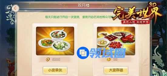 观月楼内可宴请帮会成员,帮会成员享用宴席即可获得补充体力的道具。观月楼每天只能开启一次宴席,分为小宴挚友和大宴群雄,小宴挚友每次需花费50000铜钱,大宴群雄每次需花费100元宝,也就是说只需花费10块钱左右就可以做帮会壕来大宴群雄,为大家提升体力做贡献,快来和你的兄弟们一起大快朵颐,尽情玩耍吧!