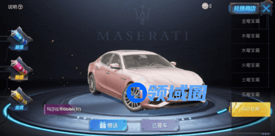 总结:玛莎拉蒂皮肤在小编看来观赏性大于实用性,因为基本数值和普通轿车一致,再加上玛莎拉蒂的获取途径充满了不确定性,所以普通玩家可以小抽几发碰碰运气,没有外观追求的玩家,普通的轿车也是很不错的选择。