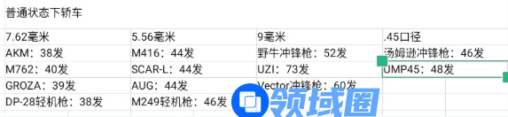 首先,小编会使用游戏中玩家经常使用的各种枪械对这两种状态下的轿车进行重复多次的实验以保证实验的准确性,以下是实验参数: