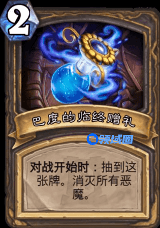炉石传说冒险模式上线前,通过拆包数据有人发现了一张名为“巴度的临终赠礼”的卡牌。
