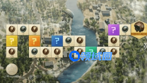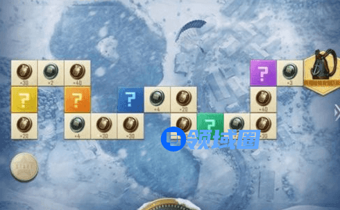 上图所示是蓝线的第一关,看到这张图后我有点懵。光子也忒会玩了吧,硬是在和平精英里面建造了一个闯关小游戏。玩家在前进的时候走到哪个格子上面就会获得相应格子的奖励,从图片中我们可以看到有物资币,有服饰币,还有带问号的格子。这些问号格子是什么意思呢?