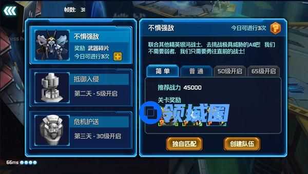 不惧强敌是一个玩家3人实时组队挑战怪物首领的玩法。每次进入副本之后系统会随机生成一个怪物首领作为boss,玩家将其在倒计时结束前击杀则获取胜利并获得奖励:武器碎片和零件碎片。