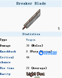 因为攻击速度慢,所以可以在击中敌人的时候伤害多次,但他的强击退又会弹开敌人,虽然困难模式才能获得,但实际伤害中比永夜之刃却不如永夜之刃,也没有debuff效果,速度也慢。