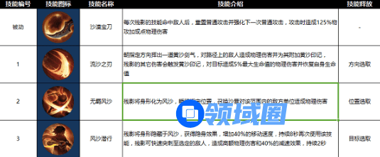 4、3技能风沙潜行,持续8秒的隐身以及40%加速,再次点击可触发二段技能,向敌人突进并减速敌人,无论是gank、追杀或是躲避集火都有较好的表现,是一个非常灵活的技能。