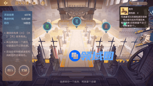 <排名奖励>-活动结束后,按照三辆战车剩余的总血量和消耗的总回合数,对表现优异的少主发放排名奖励。