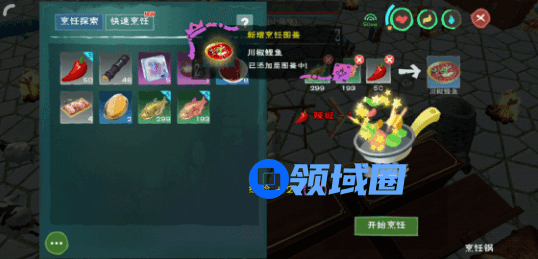 准备好川椒鲤鱼所需要的食材,然后到烹饪炉的位置,选择烹饪锅,将食材放入,点击烹饪,最后等待制作完毕即可!制作很简单,主要是准备食材的过程!