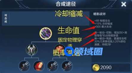 暗影战斧能够提供15%冷却缩减,我们都知道程咬金的第一核心装备为极寒风暴,可以提供20%冷却缩减,程咬金在选择了极寒风暴后再选择暗影战斧可以获得高达35%的冷却缩减。程咬金的大招非常依赖冷却缩减属性,尽可能堆叠到40%冷却缩减可以使得他的大招使用的更为频繁,从而能够变相提高他的坦度,所以暗影战斧提供的冷却缩减属性对于程咬金坦度的提升较大。