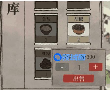 香料可以用来做菜,以升级我们的餐馆。但难免会有用不到的香料,为了避免占着库存得不到更多其他的香料,我们就可以将这些多余的香料给卖掉。每一个香料可以卖300铜钱,这比和西域商贾的交易要合算一点。