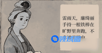 4、雷雨天,廉绮丽手持一根铁棒在旷野里奔跑,不幸被雷劈中;
