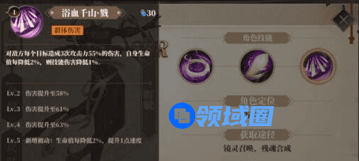 对敌方每个目标造成3次攻击力55%的伤害,自身生命值每降低2%,则技能伤害降低1%。