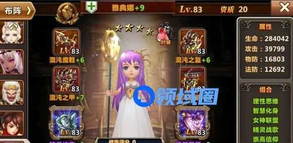 考虑到现在迪菲亚太多,我一般把雅典娜放四号位,血厚,耐++,上场攻击BUFF,跟古月一样,后期人手一个