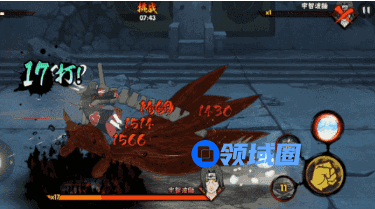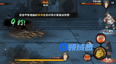 需要注意的是,在此阶段内,将会有一只通灵乌鸦出现在场地内。乌鸦会飞在空中,虽然动作灵活,但是血量极低,可以一击必杀!各位学员记得要优先解决它哟,因为当它的攻击命中忍者时,会在场景两侧各召唤一位宇智波警卫部队成员,并且同样会每隔一段时间使用一次火遁忍术。