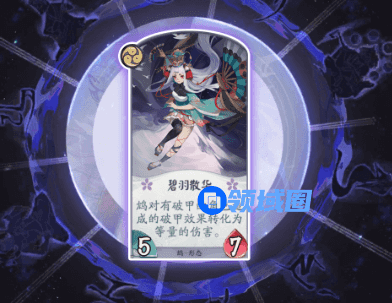 卡牌作用:这张牌并不像大多数觉醒牌一样有脱胎换骨的能力,破甲的叠加需要时间,不过鸩自己可以减少倒计时增加触发基础能力的次数,再加上其他式神的配合,所以还是能产生破甲递增的效果。