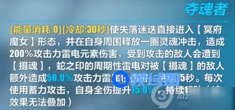 【冥府魔女】形态下的蓄力攻击与必杀技都有着较高的雷伤,被动加成到这两个技能对失落迷迭的提升也不错,配合禁忌咒文还能为全队提供全伤加成,非常契合失落迷迭能辅能输出的角色定位。