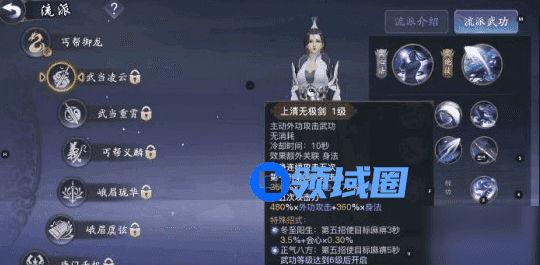 被动辅助技能,增加武功施展速度和会心。技能施展速度对于追求灵活性的凌云流派来说是比较重要的,会心越高,可以提高武功技能特殊招式的触发几率。被动技能的效果对于凌云全套的技能都有帮助和提升,所以加点优先级排在第二位。