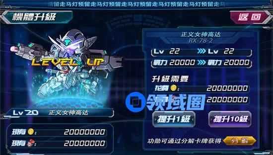 消耗一定量的功勋值,提升机体等级,机体可升等级与角色等级有关。机体的成长偏向,影响机体升级时各属性增加值大小。